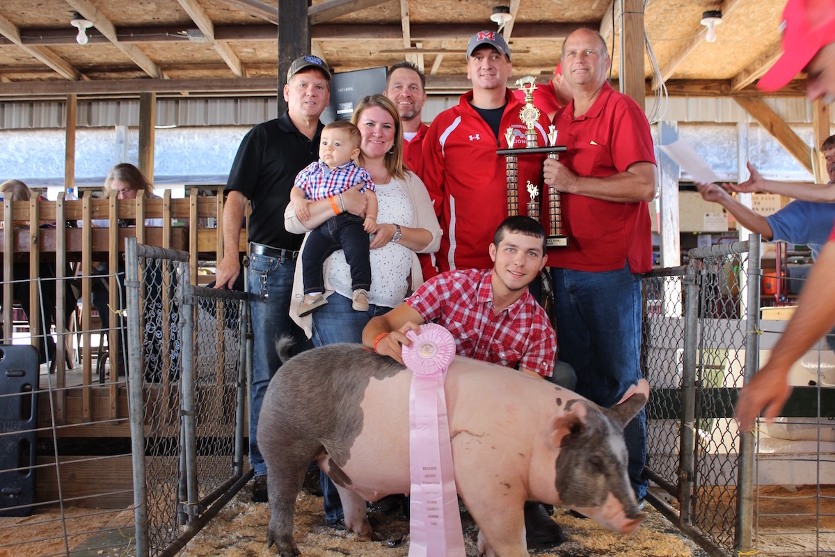Matthew Mobberly sold his 256-pound reserve champion hog for $18 a pound to Sarchione Ford of Waynesburg; Jeff’s Motor Cars; Kopp, PTL. Charles, Harry R.; Kline Family Livestock; Kiko Meats; Anthony Feed & Supply; and Doug Mobberley.
