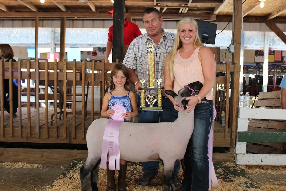 Elizabeth Pugh sold her 141-pound reserve champion market lamb for $45 a pound to Annabelle and Rich Eslich, of Eslich Wrecking Co.; and Mcintosh Oil.