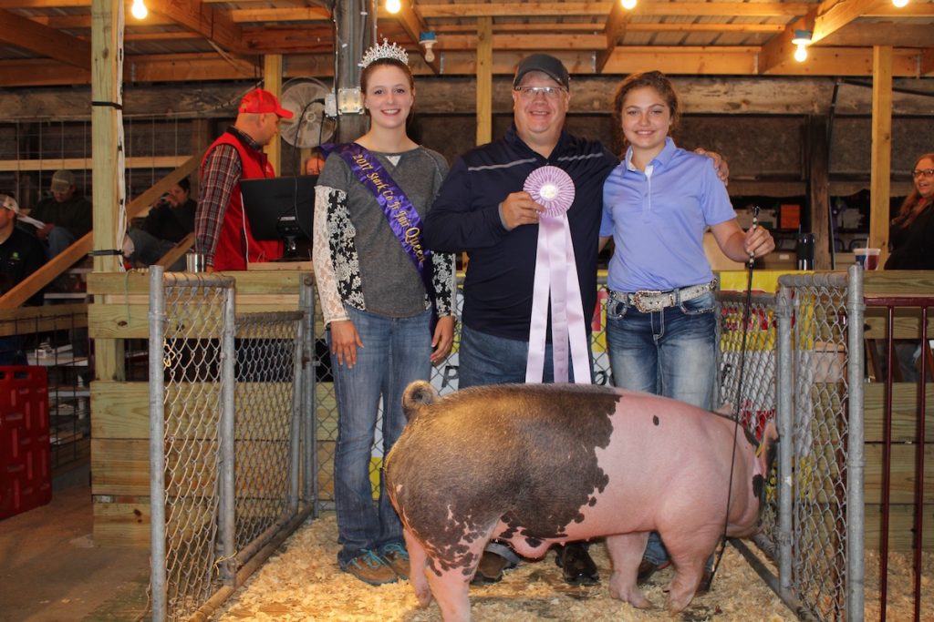Kyle Lewis sold his 271-pound grand champion hog for $26 a pound to Jeff Sarchione and Mollie Horning of Sarchione Ford of Waynesburg.