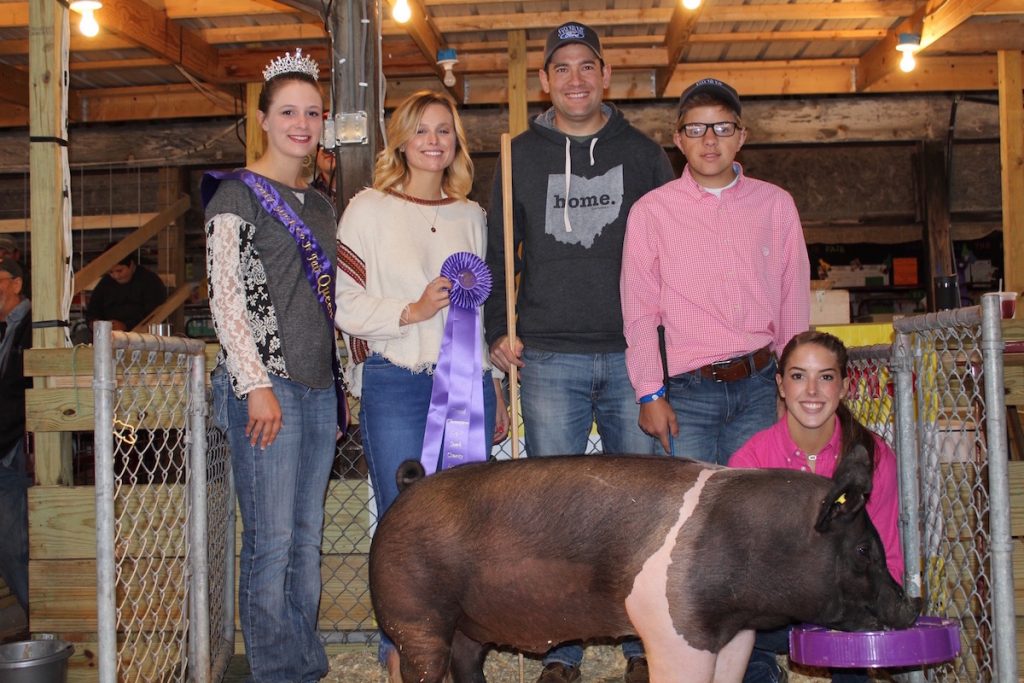 Makenah Rohr sold her 269-pound reserve champion hog for $19 a pound to Mike Walpole of Brewster Cheese.