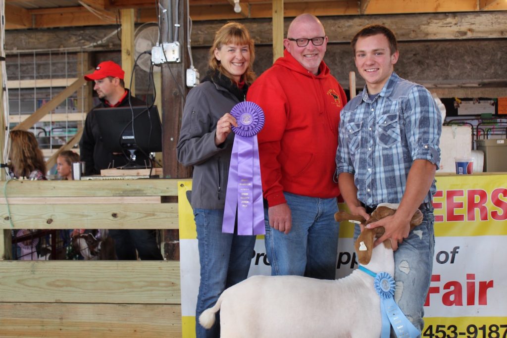 Andrew Heppe sold his 87-pound grand champion meat goat for $12 a pound to Brad and Nancy Polen of Polen Meats.