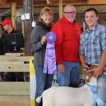Isaiah Mack sold his grand champion wool fleece for $375 to Crisiva Varner of Still Water Farm, and Chris Palmer, representing Sarchione Chevrolet.