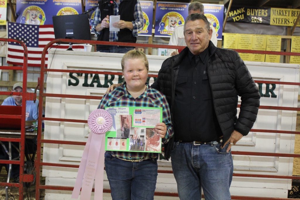 Megan Courtney sold her 1,250-pound reserve champion carcass steer for $3.25 a pound to Rich Eslich of Eslich Wrecking Co.