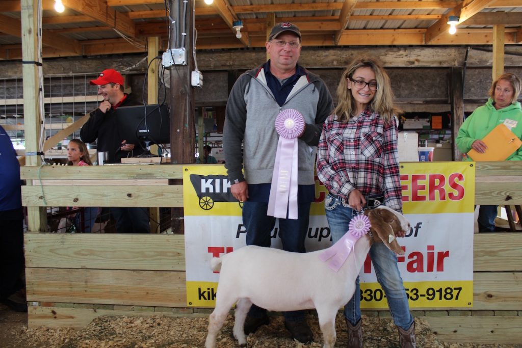 Katie Heppe sold her 97-pound reserve champion meat goat for $9 a pound to Paul Wallace, of Wallace Farms Feed and Drive Thru.