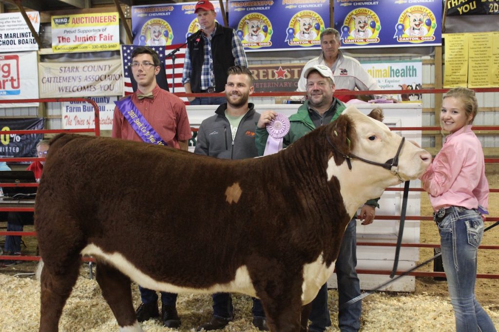 Tim Courtney sold his 1,190-pound grand champion carcass steer for $4 a pound to Polen Meats and Stark County Cattlemen’s Association.