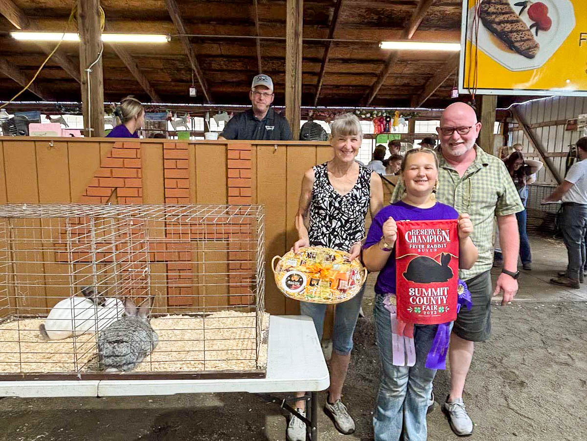 GRAND CHAMPION MARKET RABBITS: Molly Croasmun | Bid: $900/pen of 3 | Weight: 15 lbs | Buyer: Klinger’s Tree Service; RESERVE CHAMPION MARKET RABBITS: Molly Croasmun | Bid: $350/ pen of 3 | Weight: 12.5 lbs | Buyer: Mike’s Dumpster Solutions | GRAND CHAMPION FRYER RABBIT: Molly Croasmun | Bid: $450 | Weight: 5 lbs | Buyer: Croasmun Family; RESERVE CHAMPION FRYER RABBIT: Molly Croasmun | Bid: $200 | Weight: 5 lbs | Buyer: Polen Meats