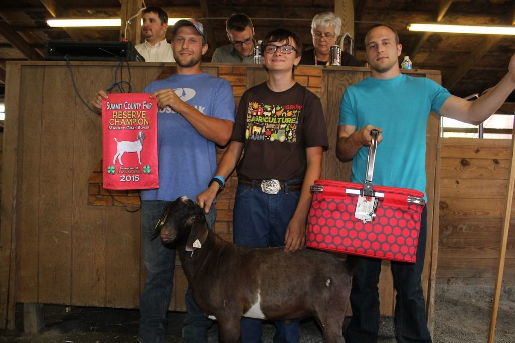 Corey Soulek sold his 82-pound reserve champion goat for $250 to John and Jason Tomayko, for Flesher’s Deadstock Removal.