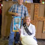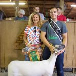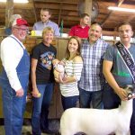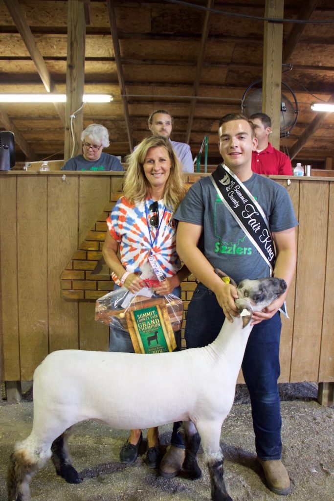 The Summit County Fair grand champion market lamb, weighing 143 pounds, was shown by Stash Apana and purchased by Ron Marhofer Auto Family, represented by Nancy Marhofer, for $8.50 a pound.