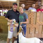 The Summit County Fair grand champion market goat, weighing 91 pounds, was shown by Abi Jones and purchased by Ron Marhofer Auto Family, represented by Nancy Marhofer, for a new record of $1,150.
