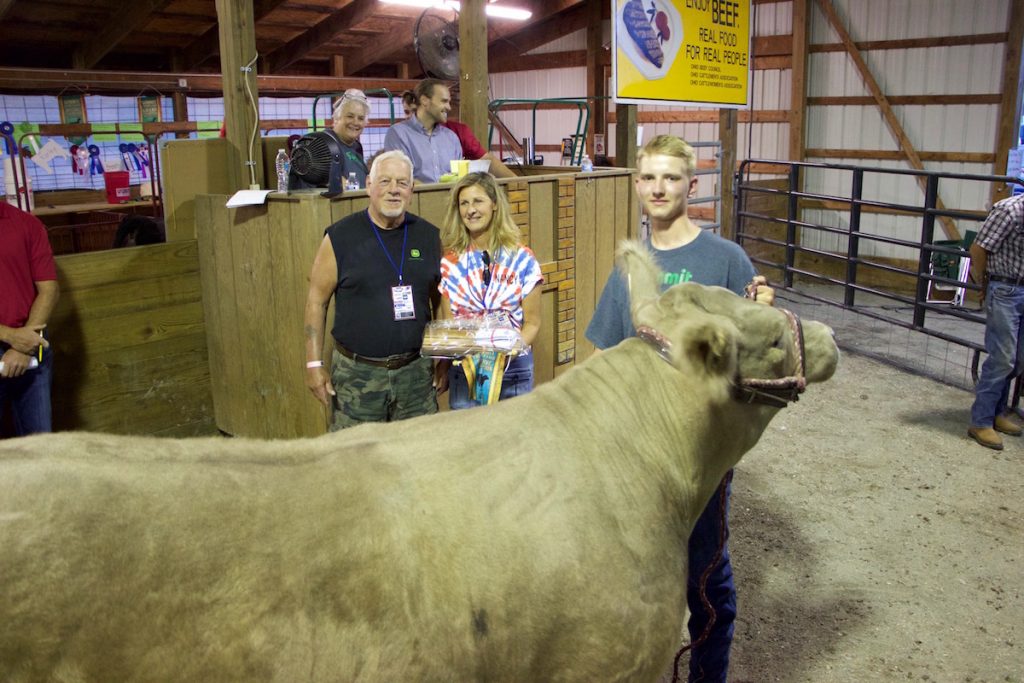 The Summit County Fair reserve champion market steer, weighing 1,285 pounds, was shown by Chase Sedensky and purchased by Ron and Nancy Marhofer of Ron Marhofer Auto Family for a new record of $17 a pound.