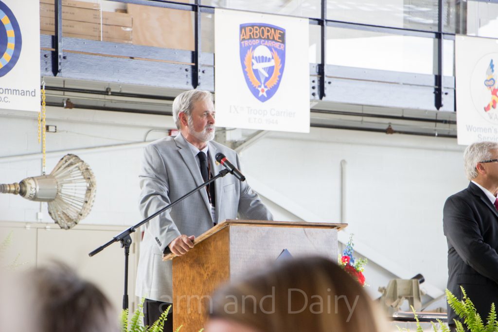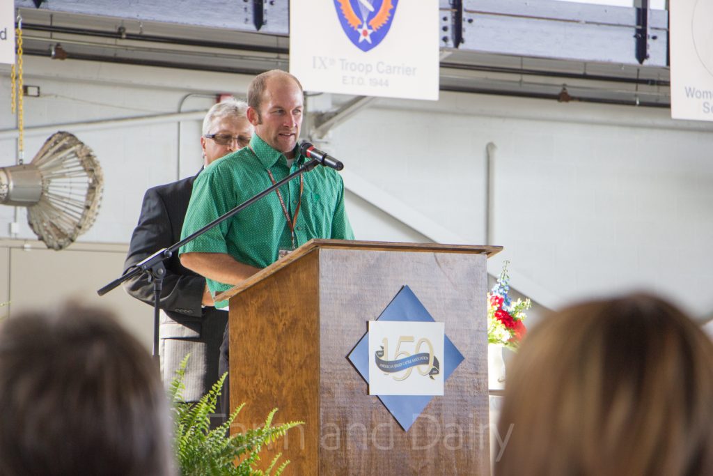 Chris Sorenson, AJCA president, welcomes guests the 150th annual meeting of the American Jersey Cattle Association at MAPS Air Museum June 27.