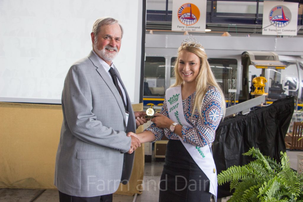 2017 National Jersey Queen Lakaya Lyon accepted the past president award on behalf of her grandfather, Joe Lyon, president of the American Jersey Cattle Association from 1970-1973.