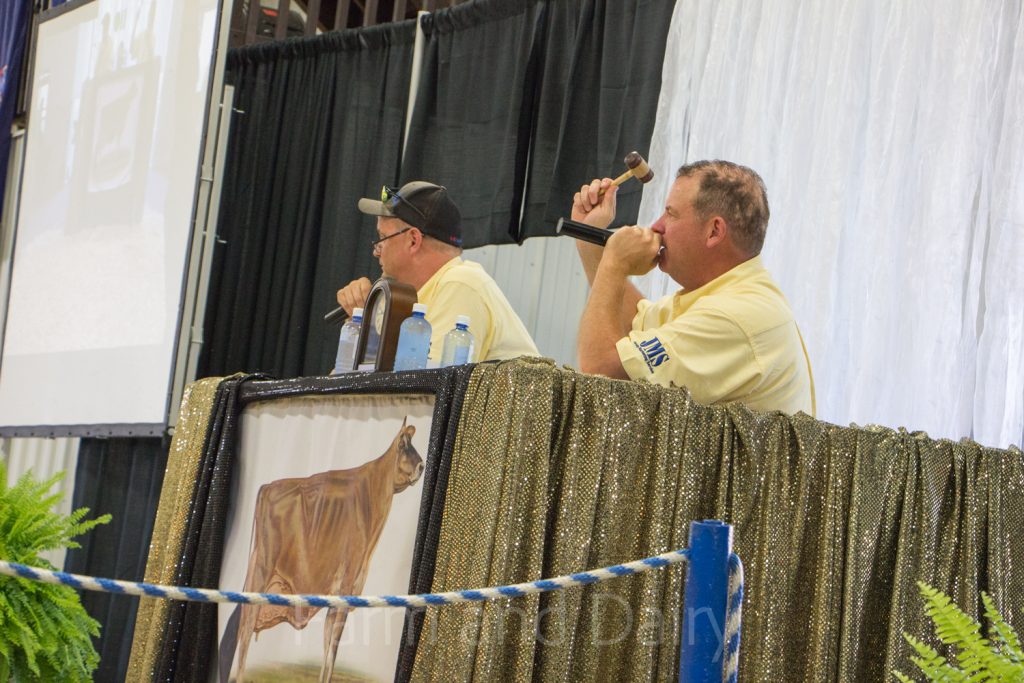 Ron Mosser, AJCA-NAJ area representative, took bids during the National Jersey Heifer Sale.
