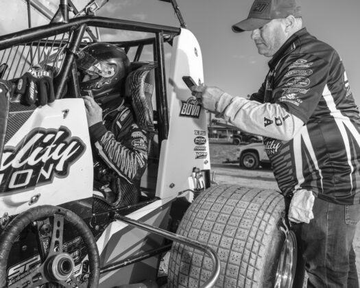 Early in his career Bova’s aggressive style would undermine him — he would force passes too early and it would lead to costly mistakes. He’s learned the value of patience since then. On this chilly, late April evening in the heat race for the All Star Circuit of Champions event at Fremont Speedway, his patience paid off. Despite having a faster car than race leader Adam Kekich, he didn’t immediately go for the lead. Instead, he bided his time and waited for his opponent to slip up. Then, he pounced to take first place.