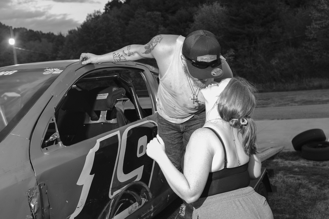 I learned the bad news from a gas station attendant about 10 minutes from the track who took one look at my tie-dyed 2007 Hillbilly 100 T-shirt and said, “Oh hun, they ain’t racin’ tonight on account of the rain.” I sent a photo of us feigning sadness and sent it to my editor Rachel along with the news. There was nothing to do but laugh about it.
