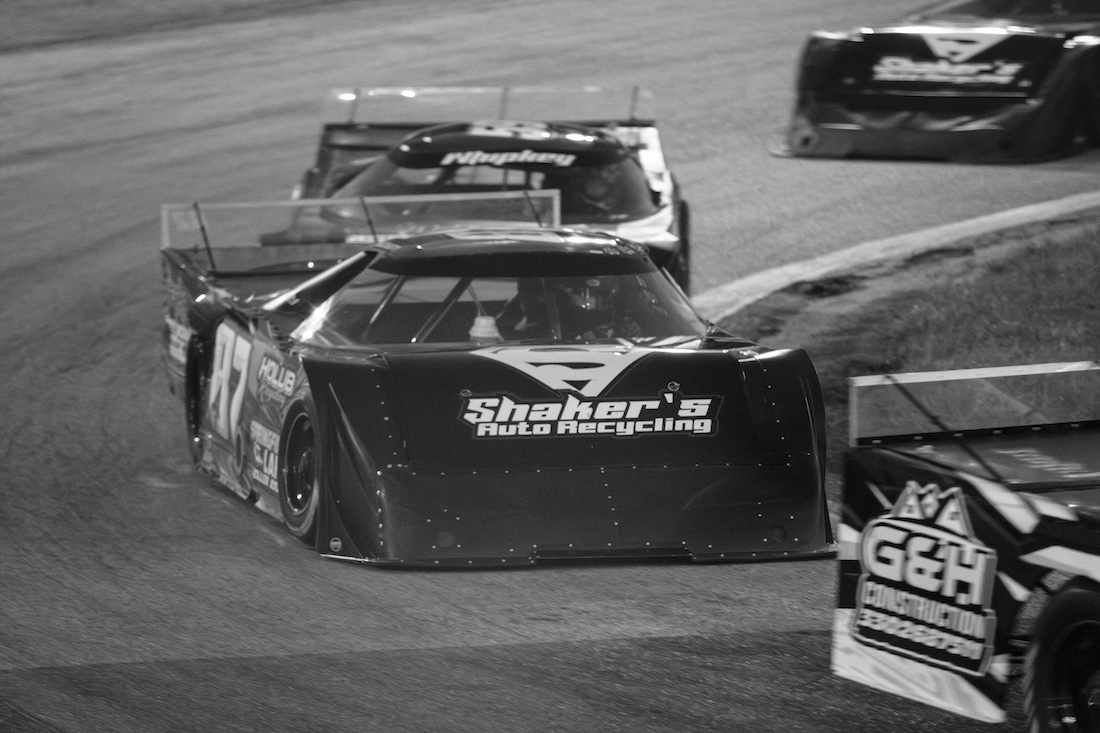During the late model feature, Mike has a front row seat to his daughter’s handling woes. He sees that she was right — a broken right rear end is the likely culprit. They’ll have to tear the car down later in the week to know for sure. The setup didn’t work, and the handling issues continue, so Chloe changes her driving style to suit the car. Despite the challenges, she slowly reels in Chris Grubbs and passes him in turn 3. She finishes in third place in the McIntosh Oil Late Model Feature — just ahead of her dad.