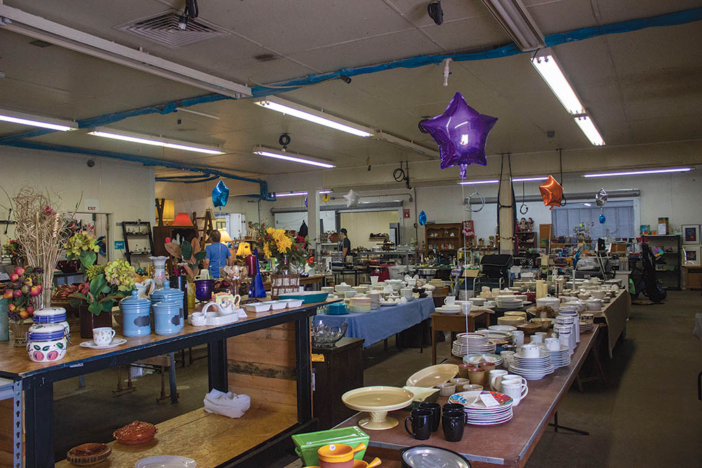 Those days have passed, but now, the former turkey processing facility is home to Thrift and Thrive, a cozy resale shop filled with a mix of new and gently used donated goods, where that spirit of community and giving lives on all year long. Shelves and displays fill rooms that once served as industrial freezers, with sloped floors and old drains still hinting at the building’s past. The store recently celebrated its second anniversary from July 24-26.