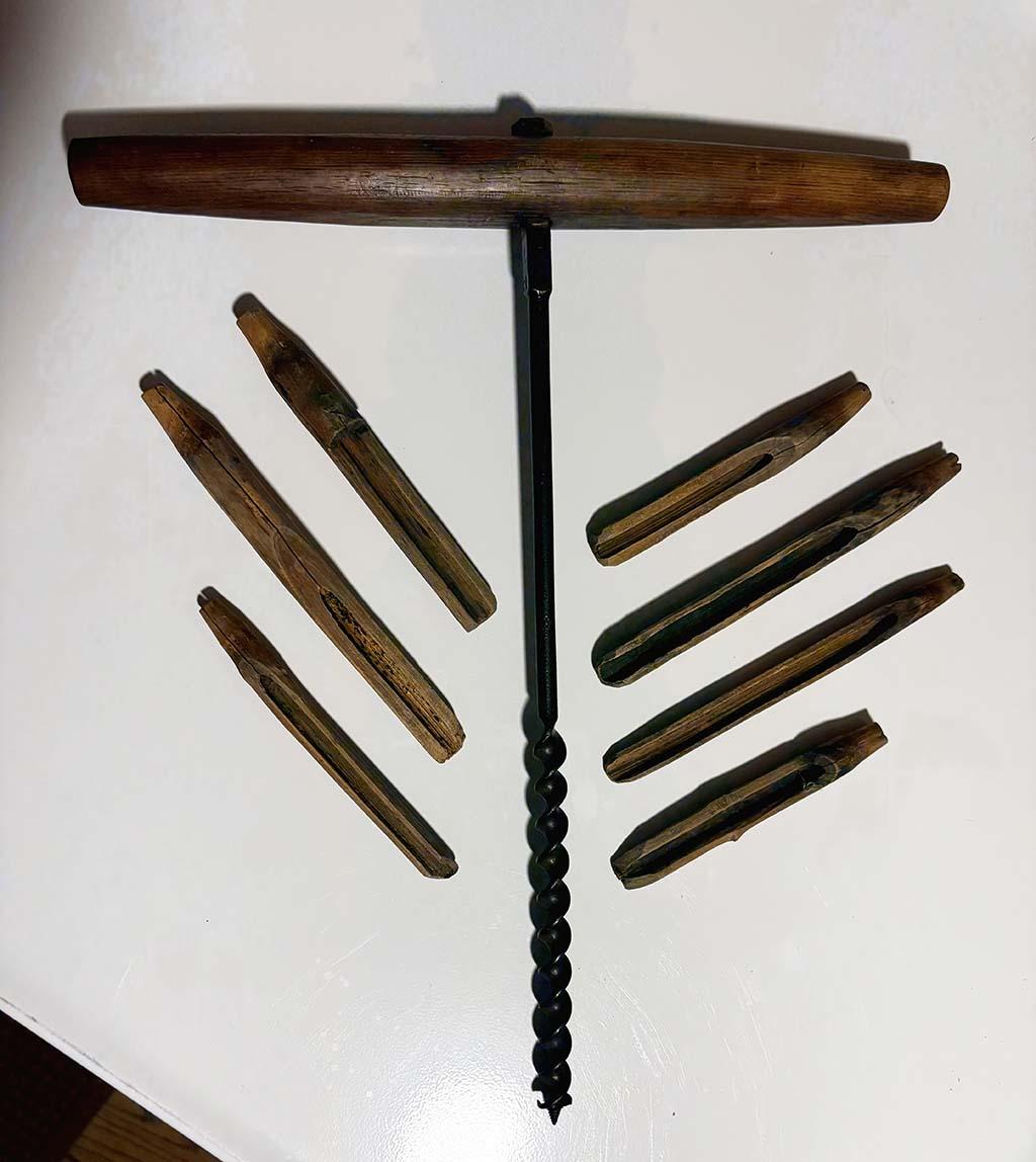 Spiles, or taps, would be set by boring a half-inch hole in the tree using a small t-handled auger. Then — as the name implies — it would be tapped into the hole using a wooden mallet.