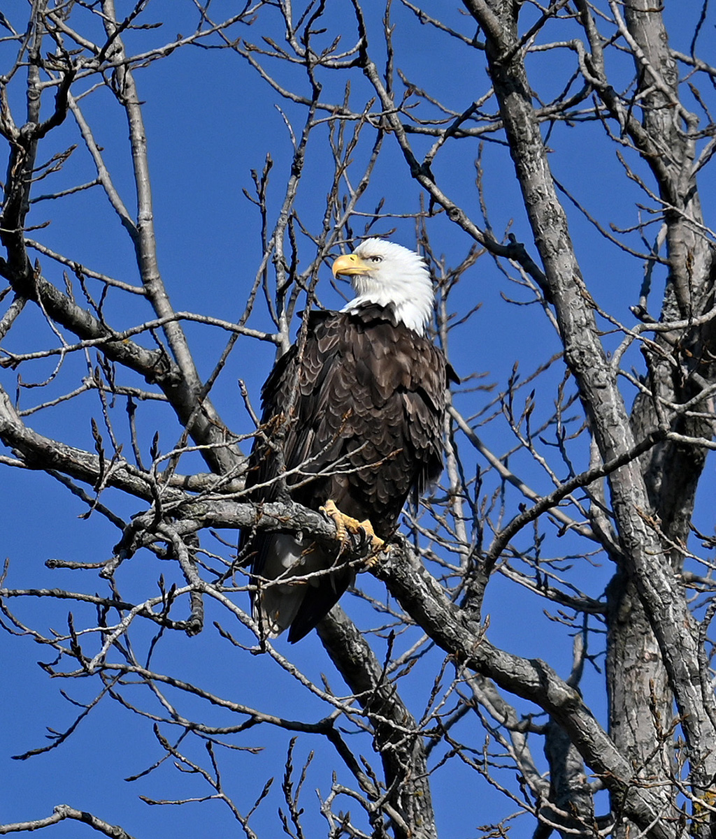 January is also the month when our two top avian predators begin to nest. The bald eagle and the great horned owl, rulers of the day shift and night shift, respectively, must start their families early in the year so that they have the time needed to not only rear their chicks but teach them to hunt before winter rolls around. I think of these birds sitting tight on their eggs as snowy squalls cover them like a giant comforter. The hoo, hoo-hoo of the great-horned can often be heard on crisp January nights, while the white heads and tails of bald eagles fairly glow in the sunshine as the birds cruise beneath an azure sky.