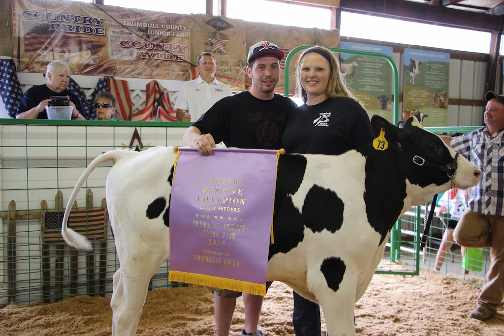 The Trumbull County Fair reserve champion dairy feeder, weighing 572 pounds, was shown by Jenna Lipps and purchased by Daniel Griggs of Westford Milling Company for $7.25 per pound.