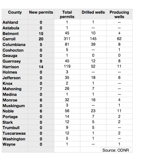 Six permits were issued in Monroe County. The ODNR issued five permits to Eclipse Resources I LP. for a drilling site in Lee Township. One remaining permit was issued to Antero Resources Corporation for a well site in Seneca Township.