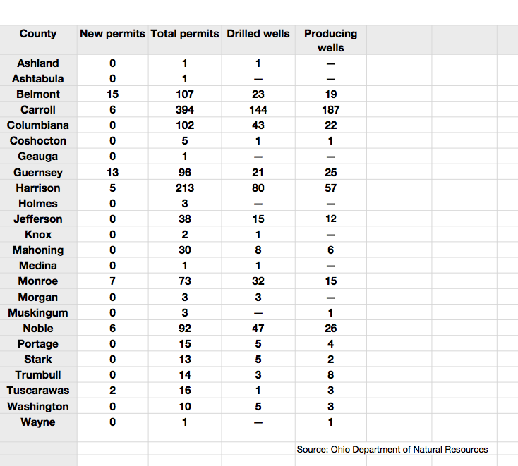 SALEM, Ohio —  The Ohio Department of Natural Resources issued 15 new permits for shale play wells in Belmont County last month, the most granted in any Ohio county.