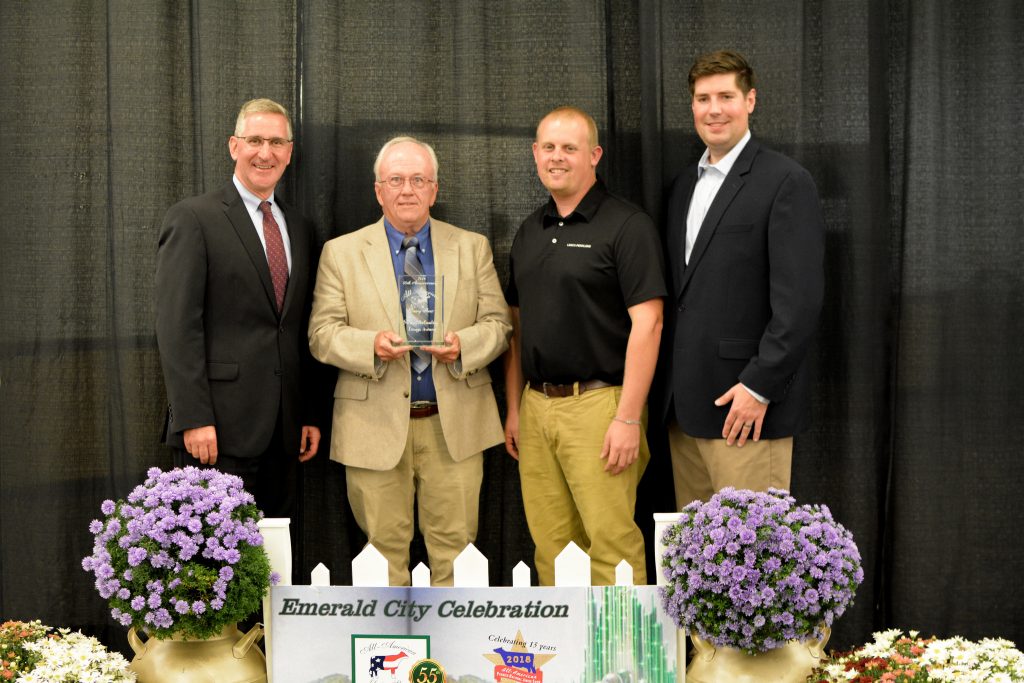The Exhibitor Appreciation Dinner was held on September 16, 2018 at the Pennsylvania Farm Show complex during the All-American Dairy Show. Dr. Alan McCauley, DVM, of Mount Cory, Ohio, was honored with the Image Award. L-R: Pennsylvania Agriculture Secretary, Russell Redding, Dr. Alan McCauley, Allen Hess, Harrison Frantz.