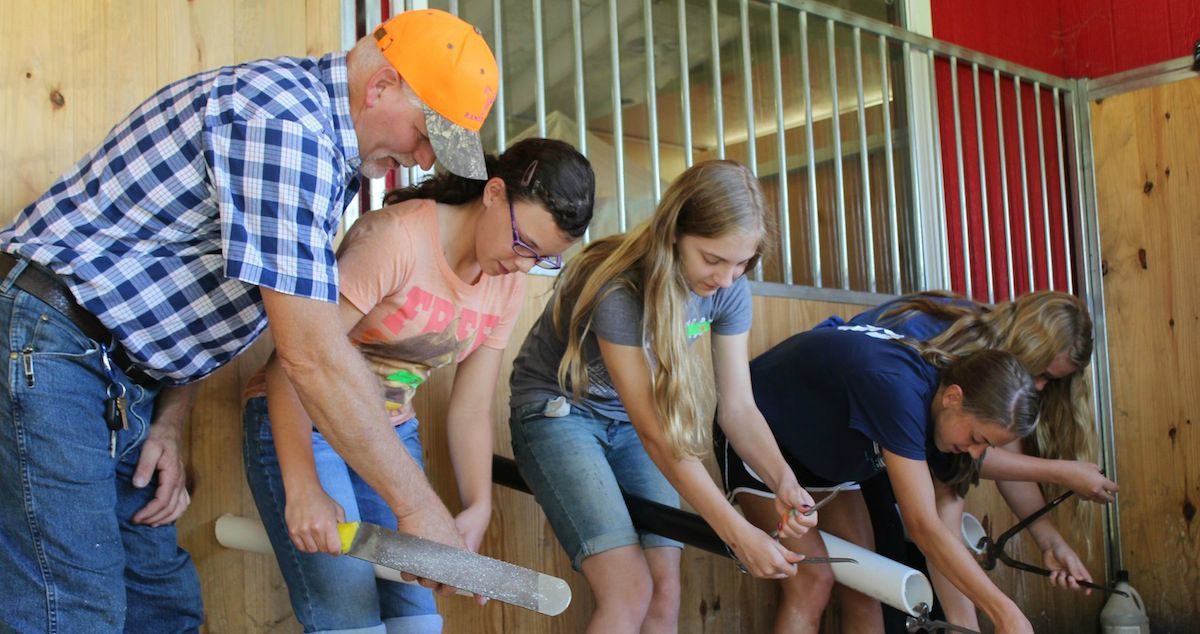 He gave each student a piece of PVC pipe, which they straddled between their legs, as they would the leg of a horse. The PVC trimmed about the same as a horse’s hoof, Krug said, without the challenges of having each student work with a real horse.