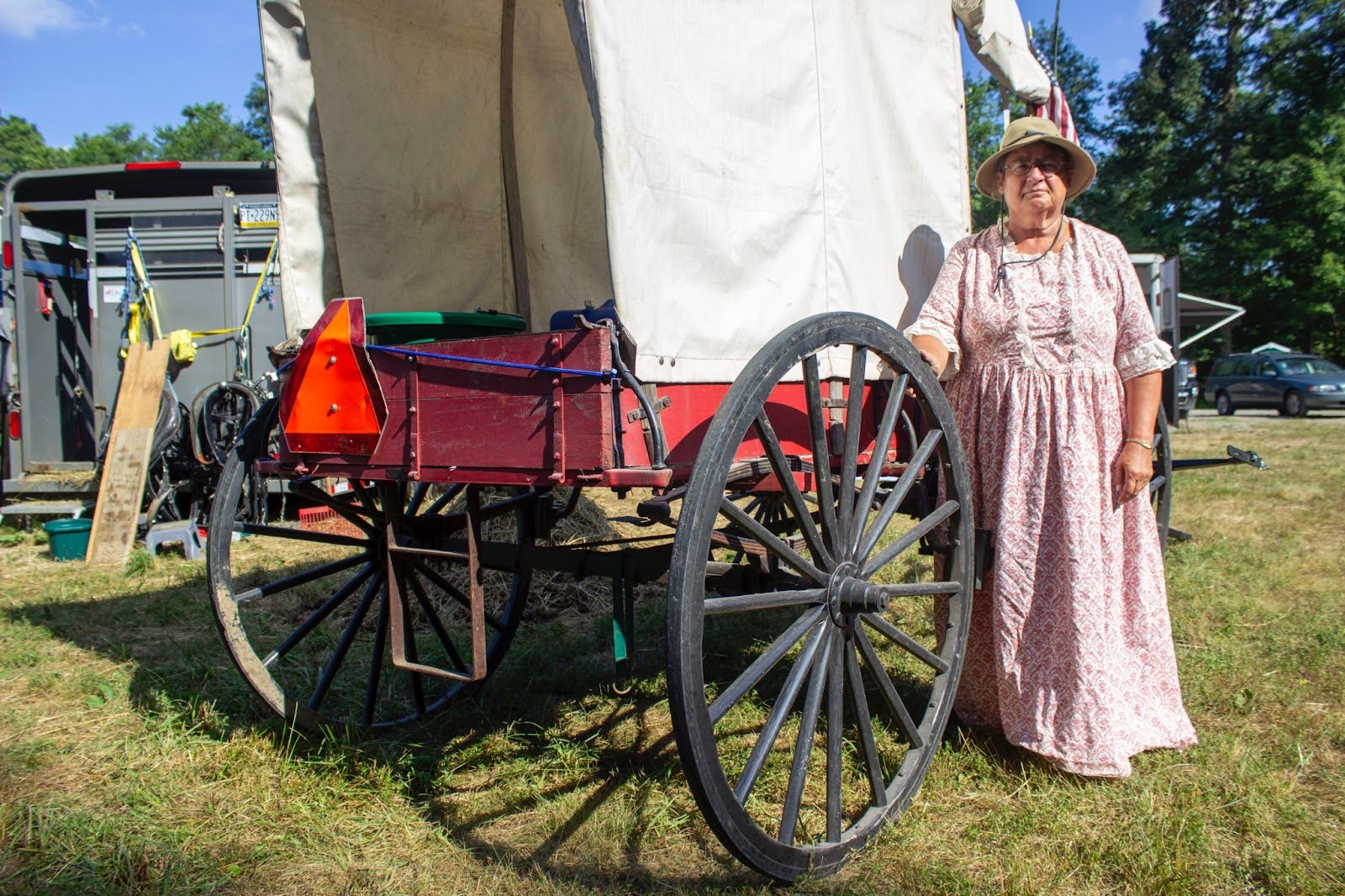 Authenticity is key to the experience and the group’s immersion. Some wagons are over 100 years old, packed with water buckets, lunch sacks and slickers so riders are ready for a sudden washout. Connor said that many of the wagons come from auctions or are sourced from businesses such as those located in Ohio’s Amish country around Millersburg and Walnut Creek. She purchased her own from a fellow member, an antique “spring wagon” made by the Schwab Wagon Company, which stopped producing them around 1925. Although Schwab no longer makes wagons, the company continues to operate today, manufacturing ambulances and fire trucks from its base in Elizabethville, Pennsylvania.
