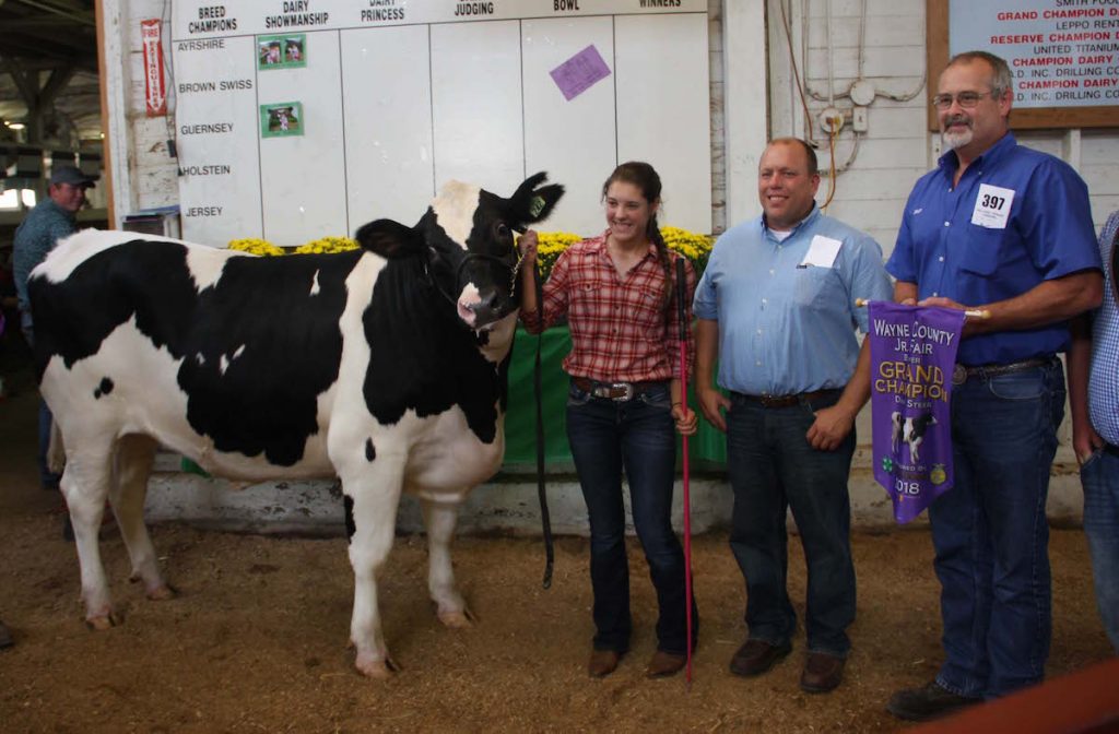 Kyle Olszewski’s 1,625-pound reserve champion dairy steer was purchased by Jim Fry for Waynedale Truss and Panel, for $2 per pound.