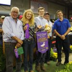 Andrews Auctioneers, represented by Steve and Seth Andrews, bid $11 per pound for Clay Johnson’s 141-pound champion market lamb.