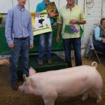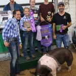 Emily Reed’s grand champion pen of meat chickens sold for $900 to Josh Hanzie for Gerber Poultry. Also pictured is Molly McCoy and Reid and Brandon Sprenger.HOGS