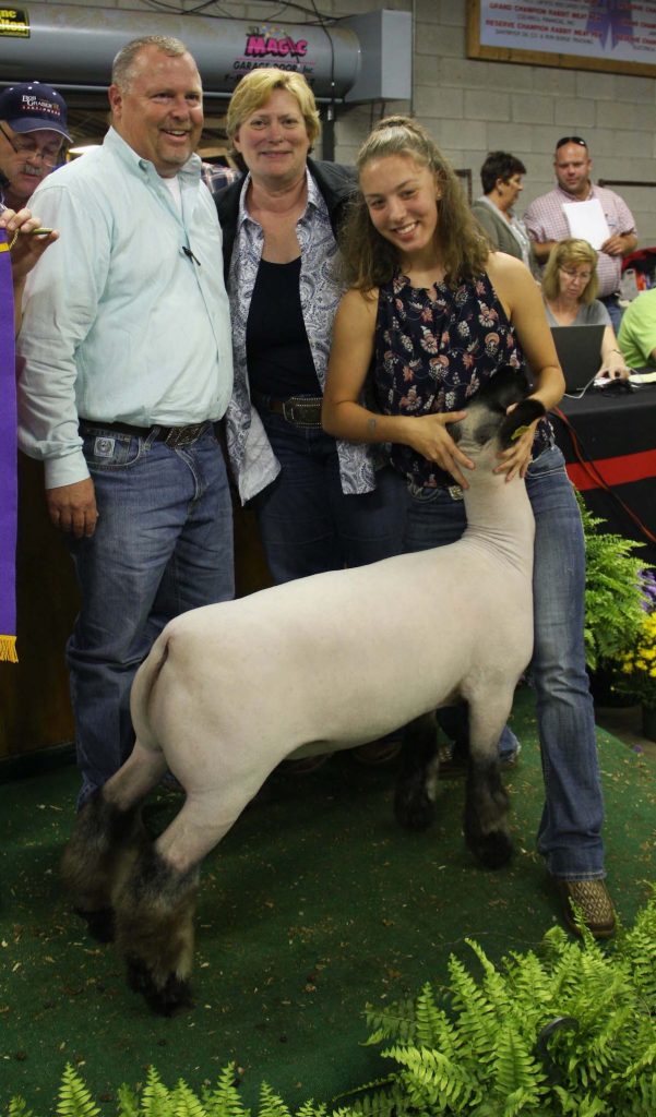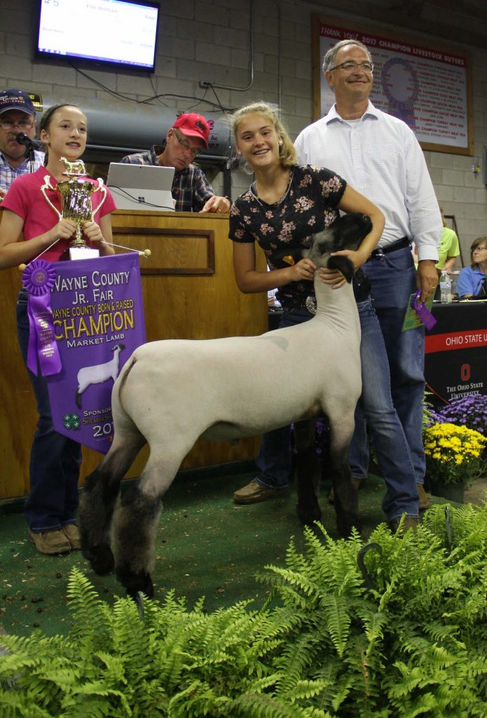 John and Patty Crum, bid $8 per pound for Ellie Brillhart’s 145 pound Wayne County Bred champion market lamb.