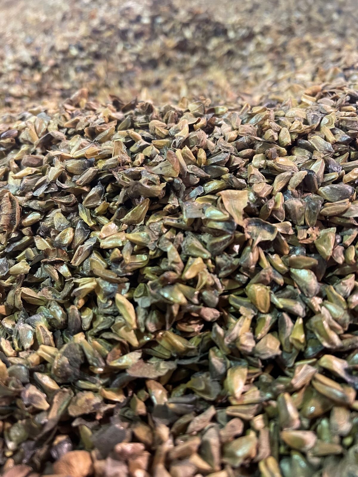 The cones are dried through the fall and processed after the holidays to extract the seeds.