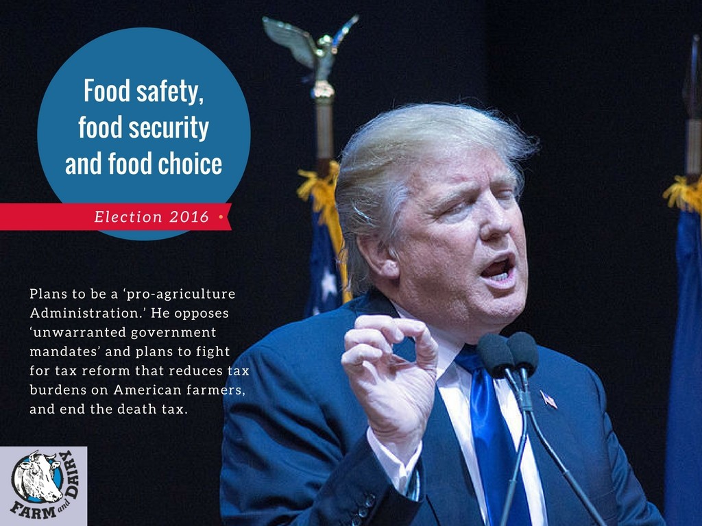 Trump: Plans to be a “pro-agriculture Administration.” As president, he intends to “fight for American farmers and their families.” Says that through hard work, persistence and innovation, and making wise use of our nation’s God-given lands and resources, American farmers are the best in the world at what they do. Says that growing the farm sector and supporting the nation’s farmers are “critical steps to making America great again.”