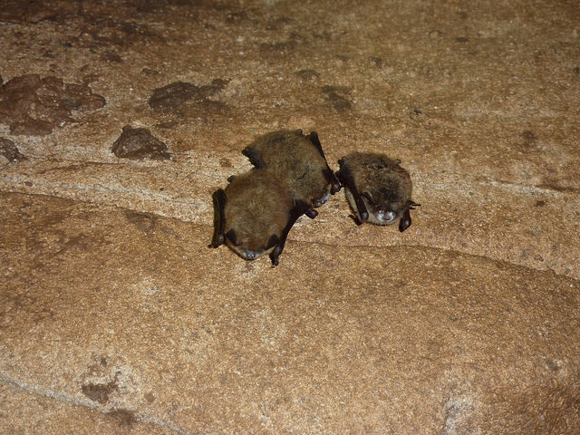 Scientists regularly visit the entrances of bat roost-caves (hibernacula) to look for unusual bat behavior. Three solar-powered bat detectors have been placed outside hibernacula to record bat calls, and all park staff report sick or dead bats.