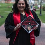 Brianna Gwirtz, OSU ’18 ag communications graduate, of Shelby, Ohio, wove some Tim McGraw lyrics from his son “My Little Girl” into her cap’s design, which is also a tip of the hat to her father’s support. (Photo: Photography by Grace Johnson)