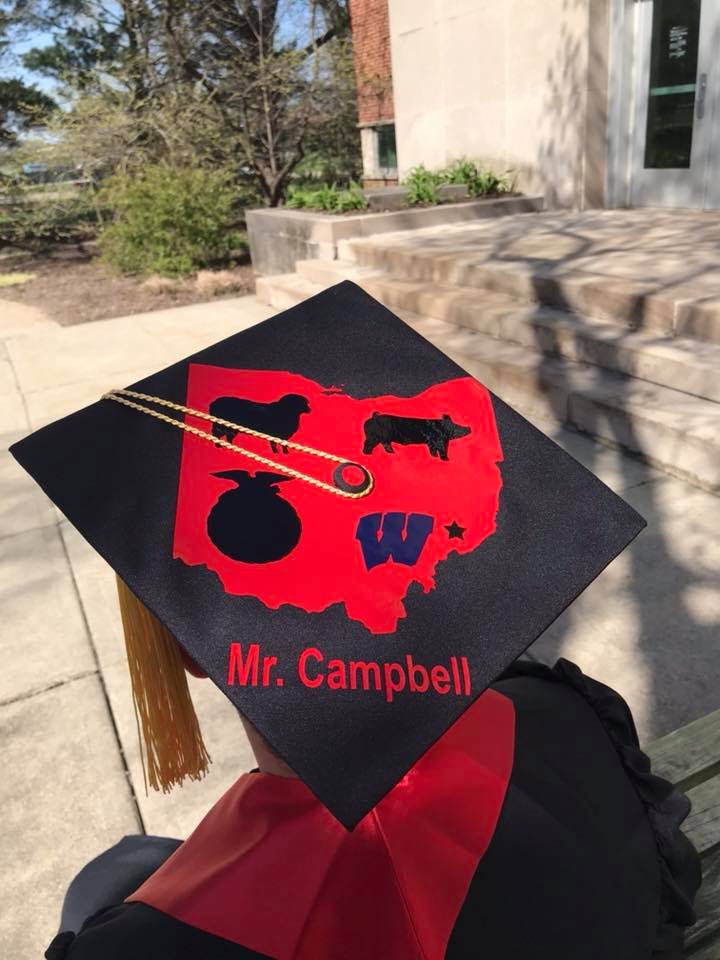 2018 Ohio State ag education graduate Blake Campbell, of Waterford, Ohio, emphasized his passions on his mortarboard. (Photo courtesy Blake Campbell)