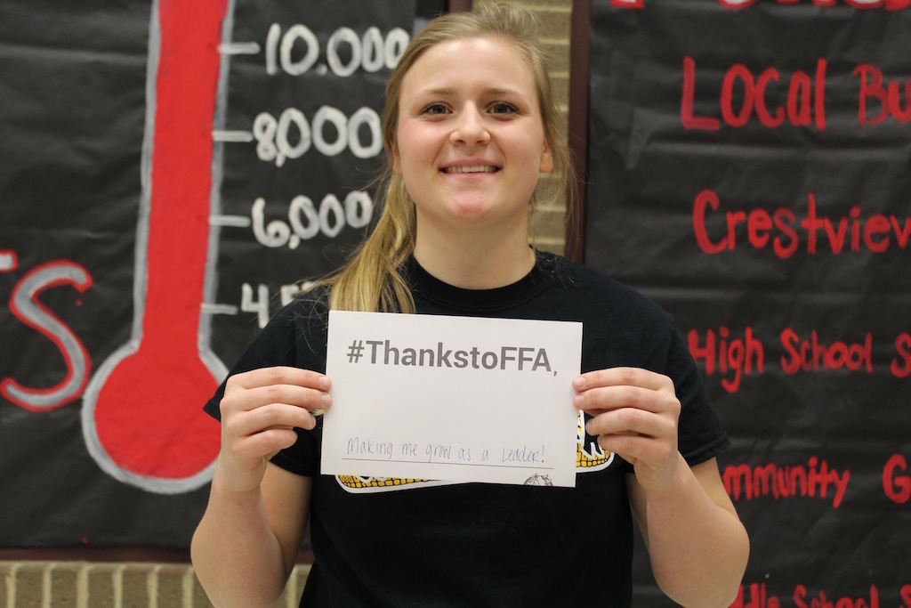 Emma Ardis, reporter for the Crestview-Ashland FFA, says thanks to FFA for “getting me out of my comfort zone.”