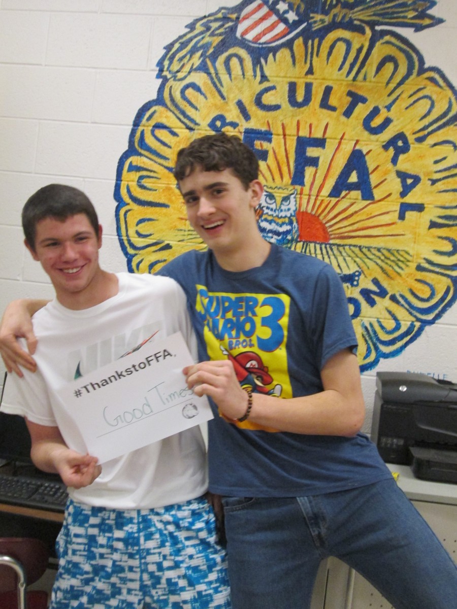 Pymatuning Valley FFA members, in Andover, Ohio, say #ThankstoFFA for the good times.