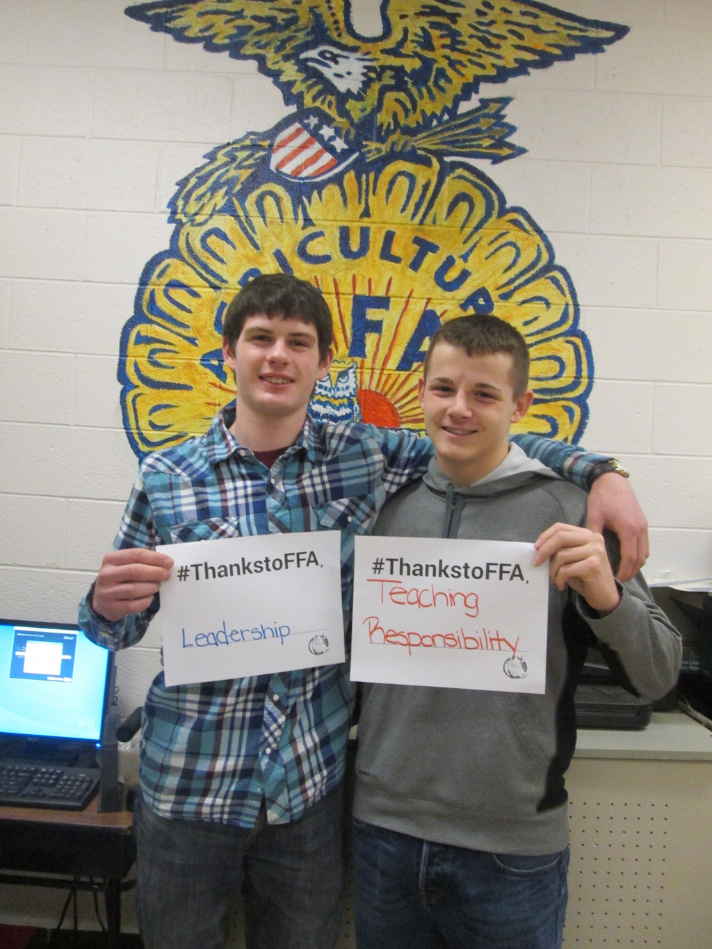 Pymatuning Valley FFA members, in Andover, Ohio, say #ThankstoFFA for teaching leadership and responsibility.