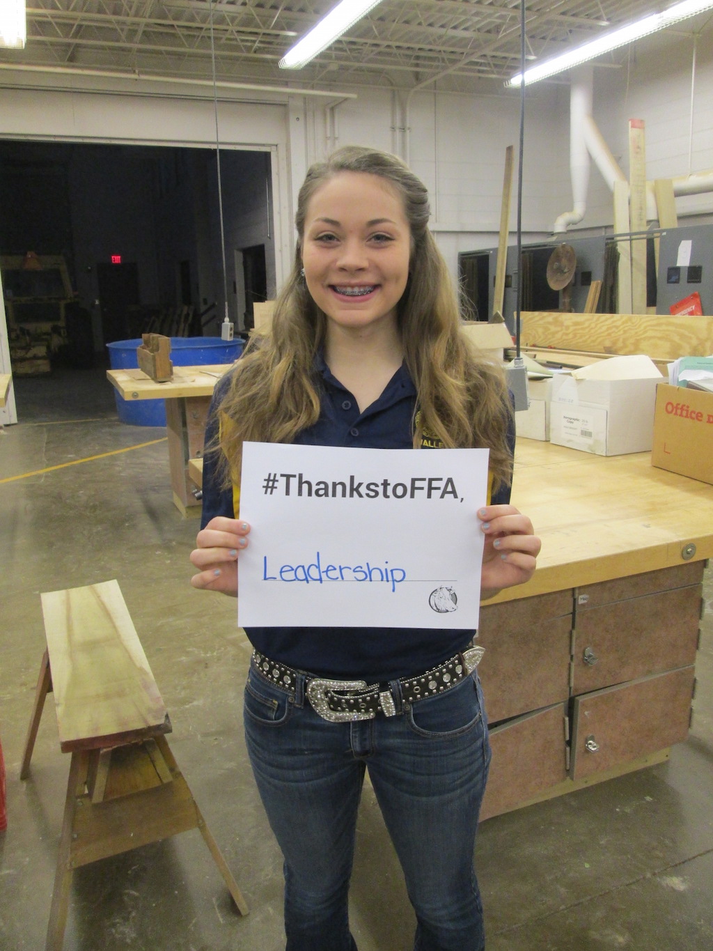 Pymatuning Valley FFA member, in Andover, Ohio, says #ThankstoFFA for teaching leadership.
