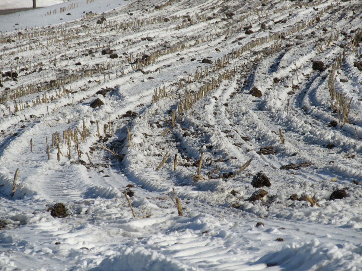 In the Western Lake Erie Basin (WLEB) watershed, the application of manure to frozen and snow-covered soils requires there to be a growing crop in the field. This could be a pasture, alfalfa, clover, ryegrass or a rape crop.