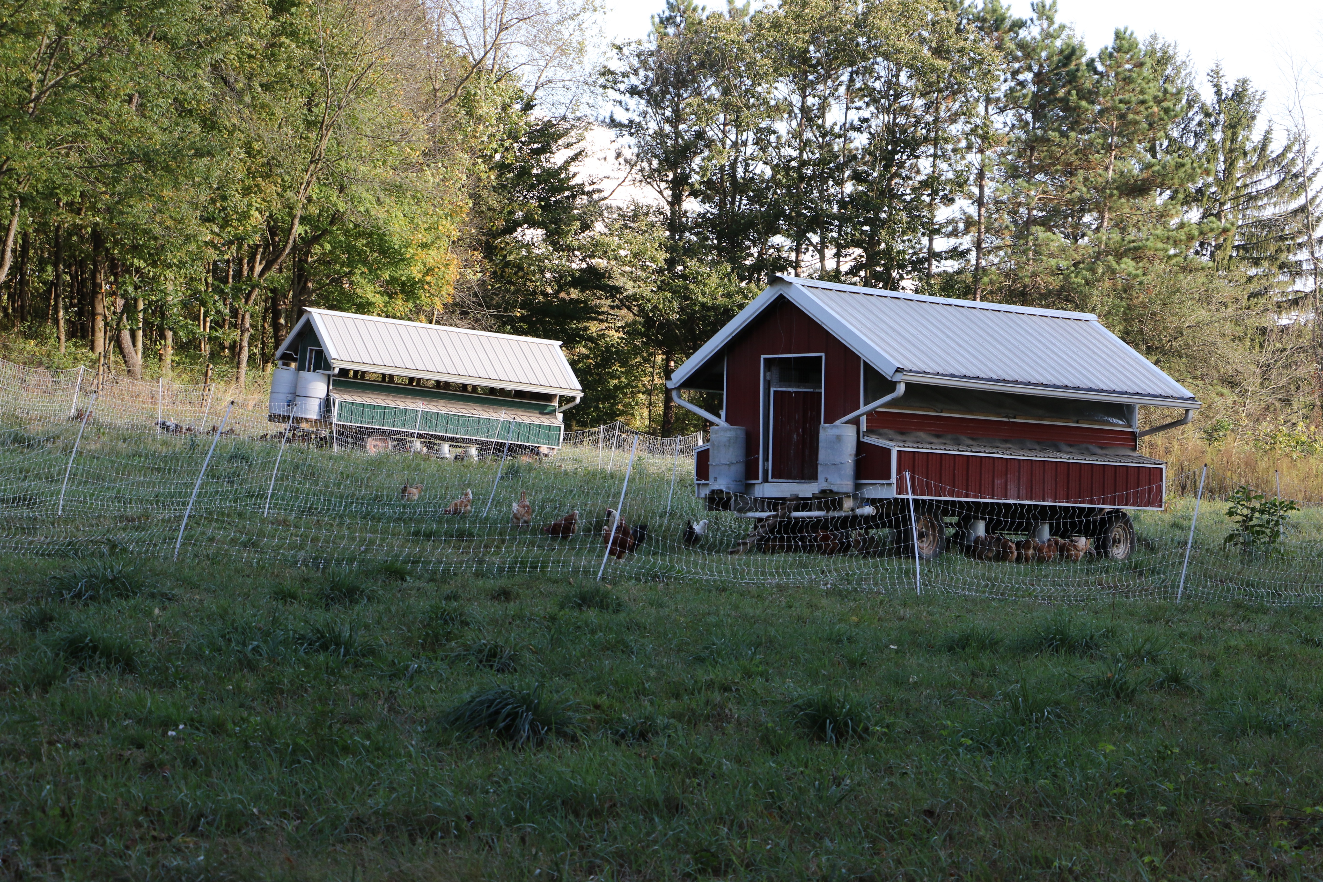 Caleb hopes to graze into November, at least. Then, he’ll hunker down for the winter. He works longer hours for Southwest Fuels then anyway. His hens are housed in his barn in the winter, with LED lights to extend daylight and encourage egg laying. He sells off his 2-year-old birds, which halves his flock size.
