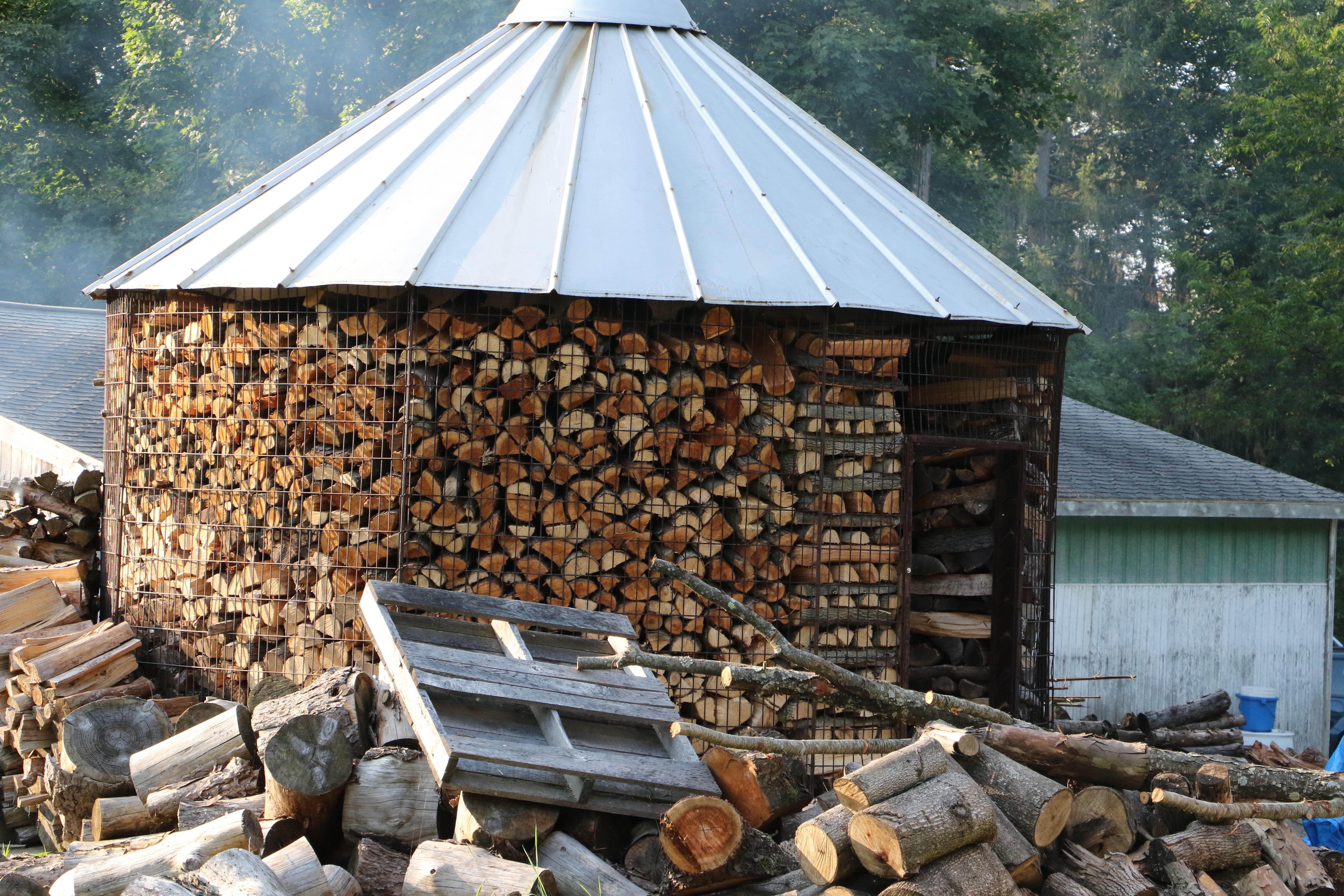 Caleb also sells firewood, in bundles. An old corn bin holds the wood, cut from deadfalls and trees that have been thinned out. The firewood, and eggs, are sold off his farm on the honor system. It’s worked well. A couple of times on both he was shorted one week, but the next, there would be “a whole bunch of money in the box.”