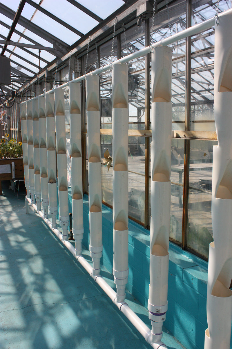 The new vertical growing system provides enough space to grow 84 plants. The current plans are to grow strawberries.
