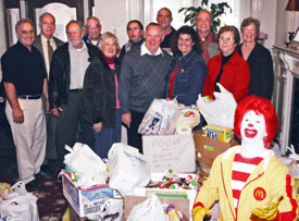 Pennsylvania Farm Bureau members, representatives of the Ronald McDonald House in Pittsburgh and Ronald McDonald gather around a food donations as part of Pennsylvania Farm Bureau’s Food Check-Out Day activities. Pennsylvania farmers raised $8,397 in food and cash donations for the Pittsburgh house.
