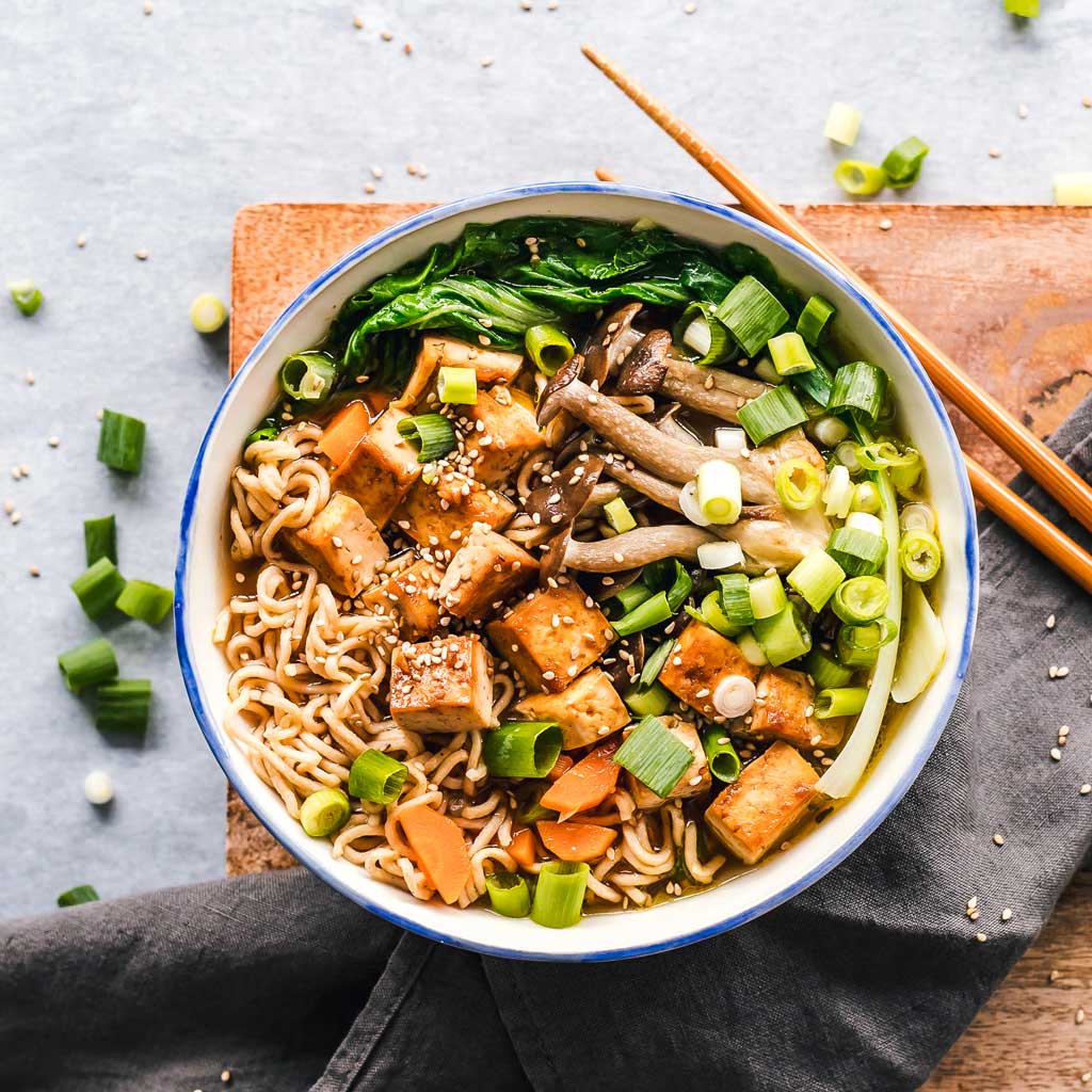 - 2 (3-oz) packages Oriental-flavored Ramen noodle soup