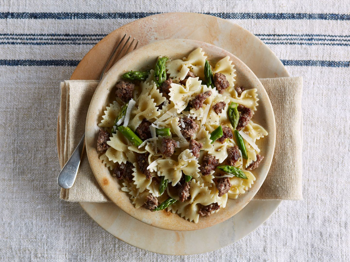 - Combine beef mixture with pasta and asparagus in large bowl; toss well. Sprinkle with cheese, if desired.