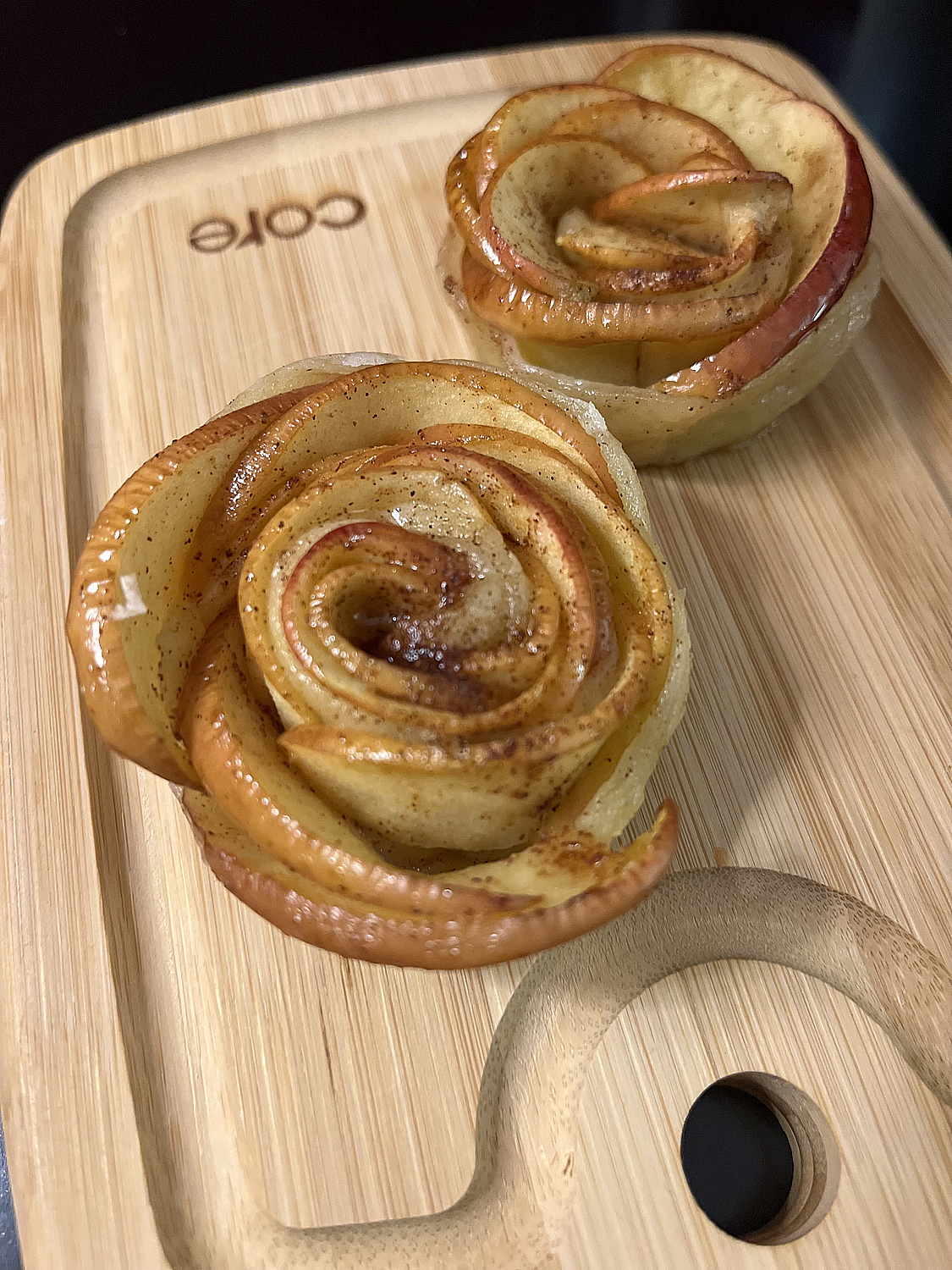 - Starting at one end, roll dough to form a rose-shaped pastry. Transfer roses to the non-stick sprayed muffin tin. Sprinkle it with additional cinnamon sugar.
